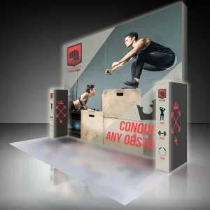 Our Bright LED Backlit Displays are the newest trend for trade shows and indoor display solutions. They come in a wide variety of sizes and feature advanced LED technology, and high definition silicone edge graphics (SEG). We offer a custom curved display (available in 7.5×7.5ft, 7x10ft and 7.5x10ft) and straight displays in 7.5 x 7.5 feet10 x 7.5 feet10 x 10 feet10 x 15 feet and 20 feet.