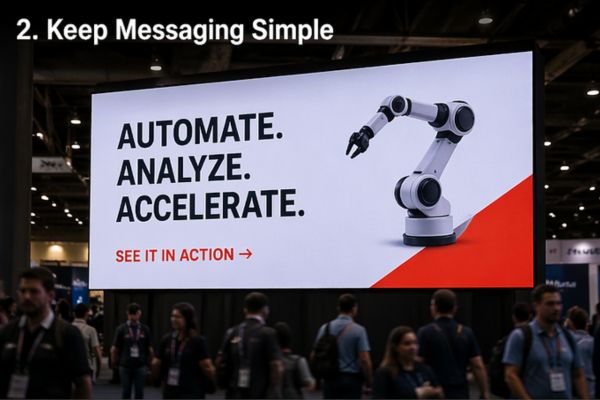 Most attendees are walking by at a distance. If they can’t understand your message within 2–3 seconds, they move on.