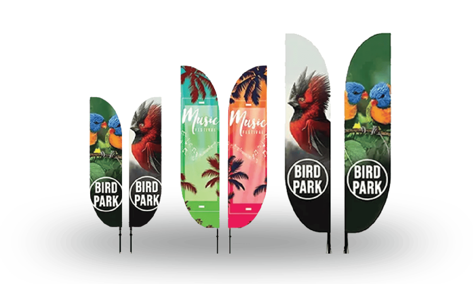 We help brands select the right banner shape, size, and design to ensure every event delivers maximum impact. Our in-house designers can help you create a layout that works perfectly with the feather flag shape, learn more about our Free Professional Design Services here.