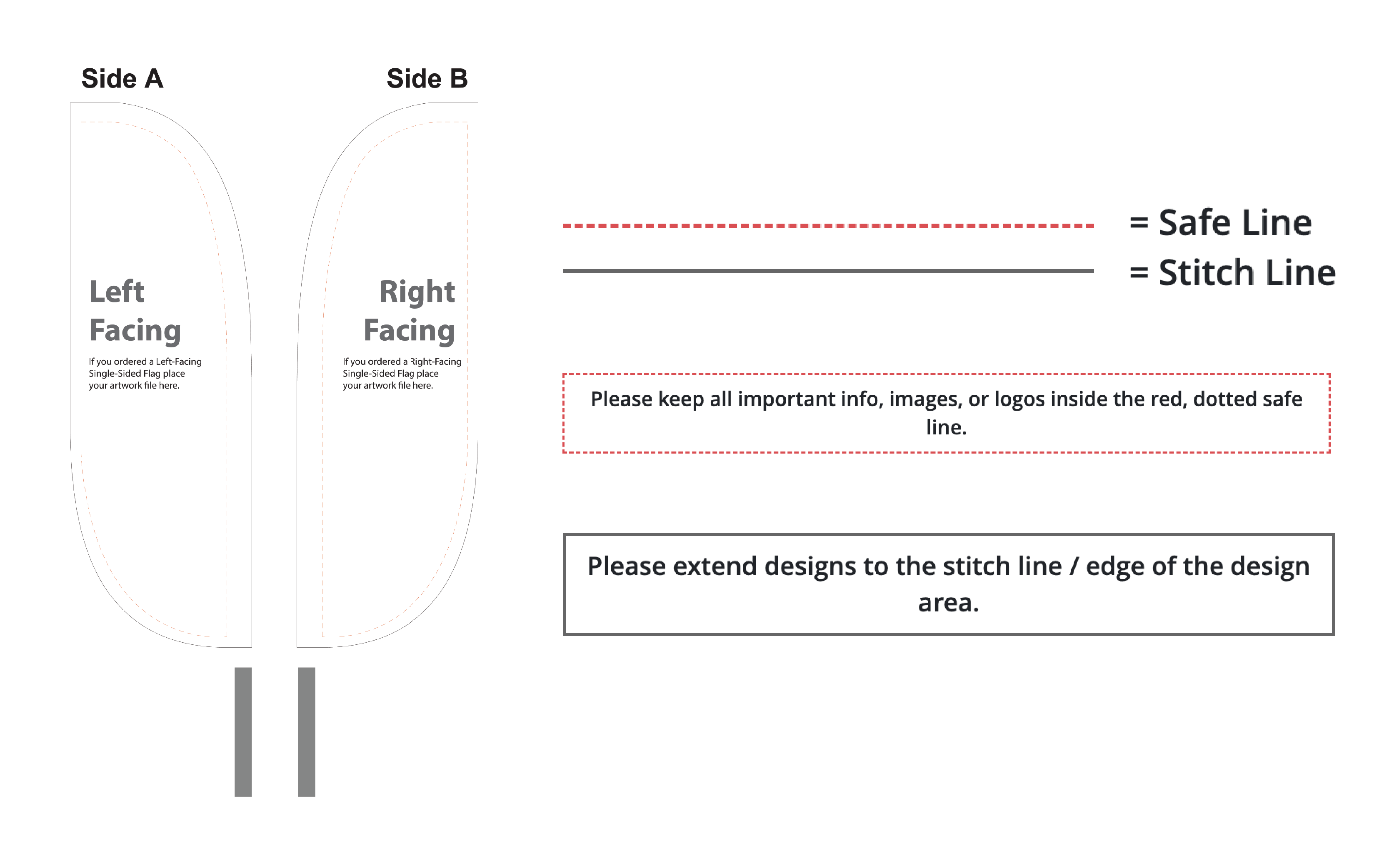 For custom flags, banners, and displays, make sure your design has proper bleed (extra space around the edges) and that important elements stay within the safe zone. This prevents logos, text, or graphics from getting cut off during printing.