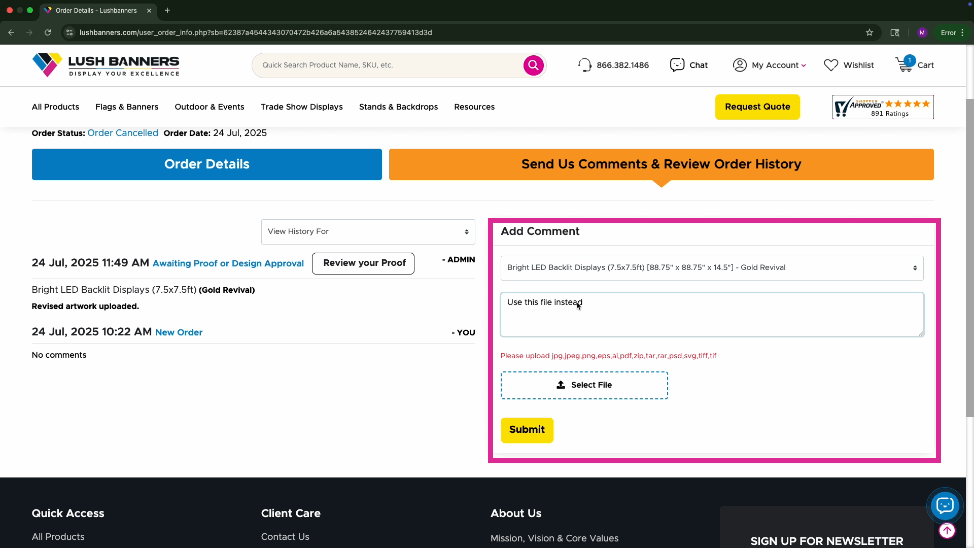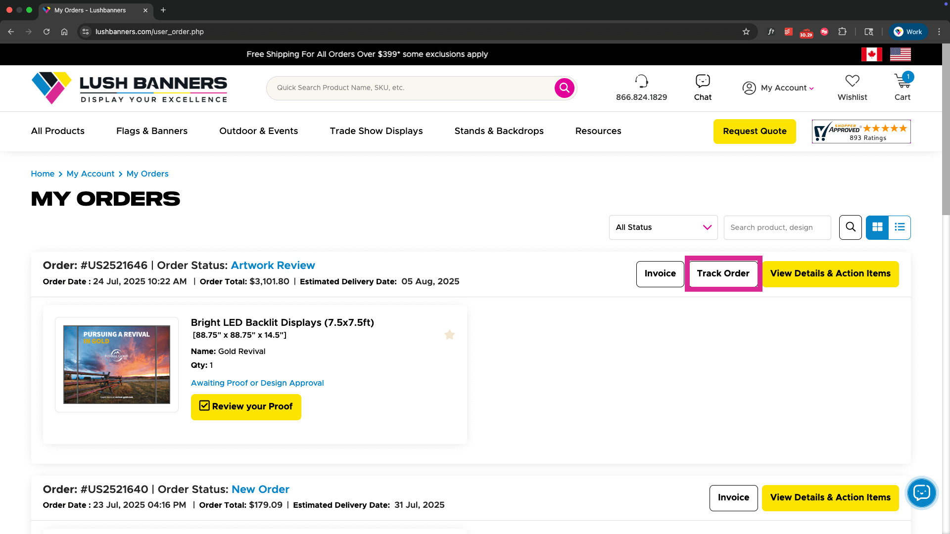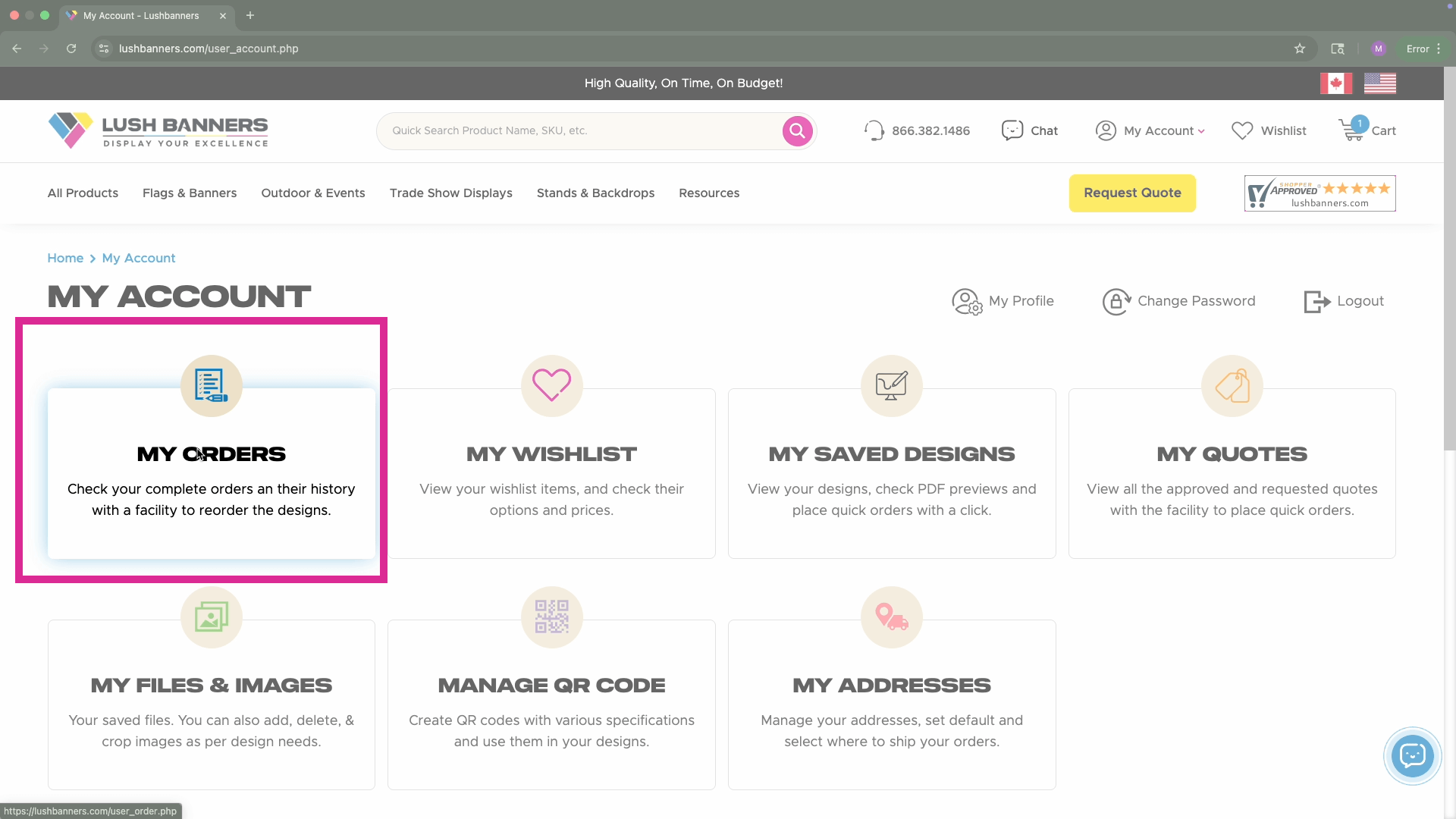 Here you’ll see your saved designs, quotes, and orders in one place.