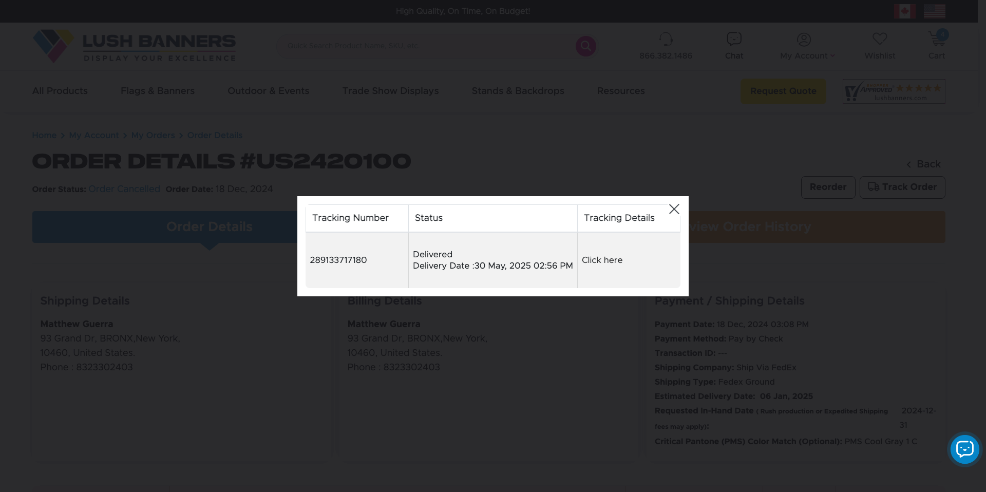 Note: Tracking information may take up to 24 hours to activate after shipment.